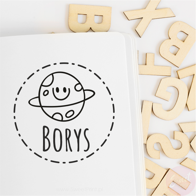 Pieczątka z imieniem PLANETA + poduszka z tuszem