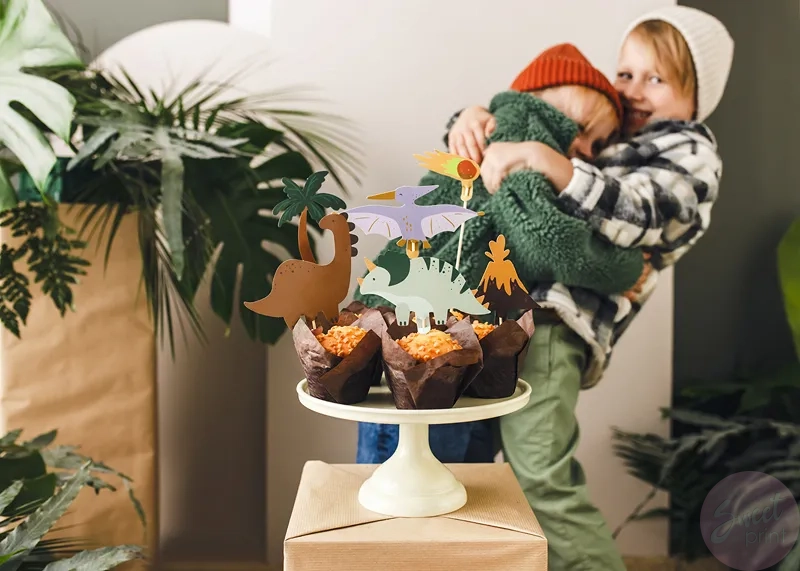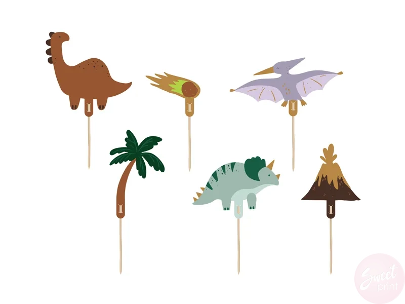 Toppery z dinozaurami będą niesamowitą dekoracją na urodzinowe smakołyki. Pikery nadają się świetnie nie tylko do tortów i babeczek, sprawdzą się również na kostkach sera, kanapkach, kawałkach owoców czy smakołykach z candy baru.