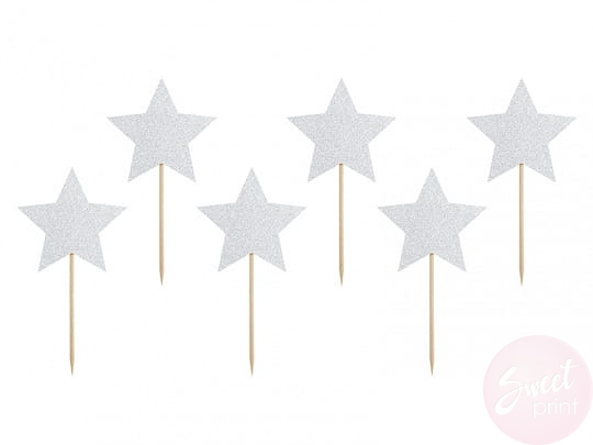 Pikery / dekoracje do babeczek SREBRNE GWIAZDKI