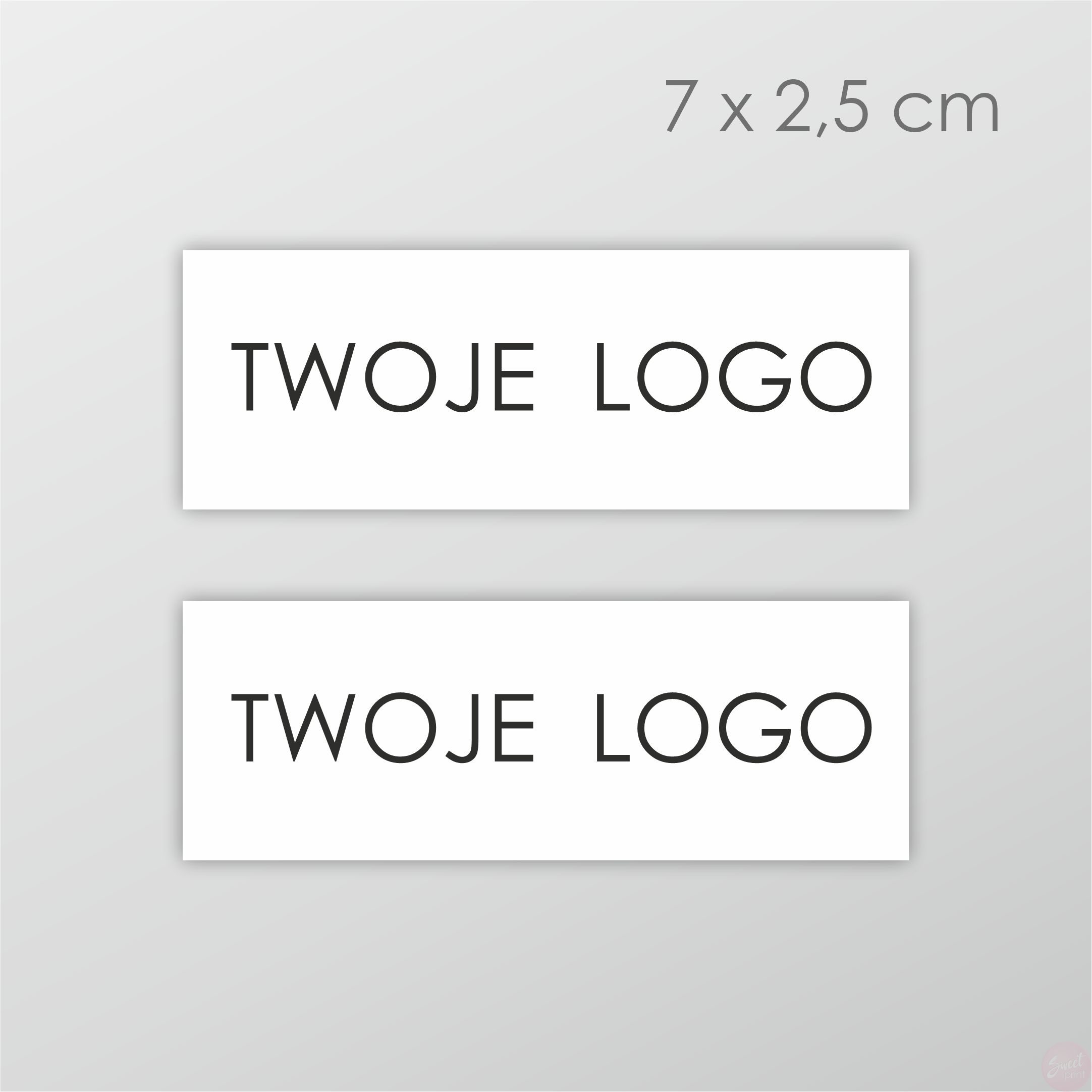 Prostokątne naklejki z logo 7x2,5 cm