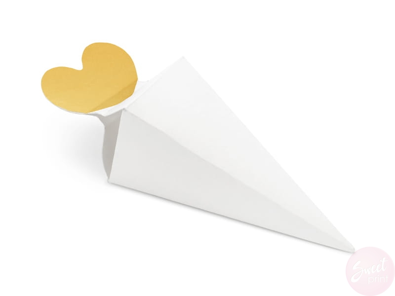 Urocze, małe pudełeczko w kształcie rożka będzie idealne na upominki dla gości weselnych czy urodzinowych.