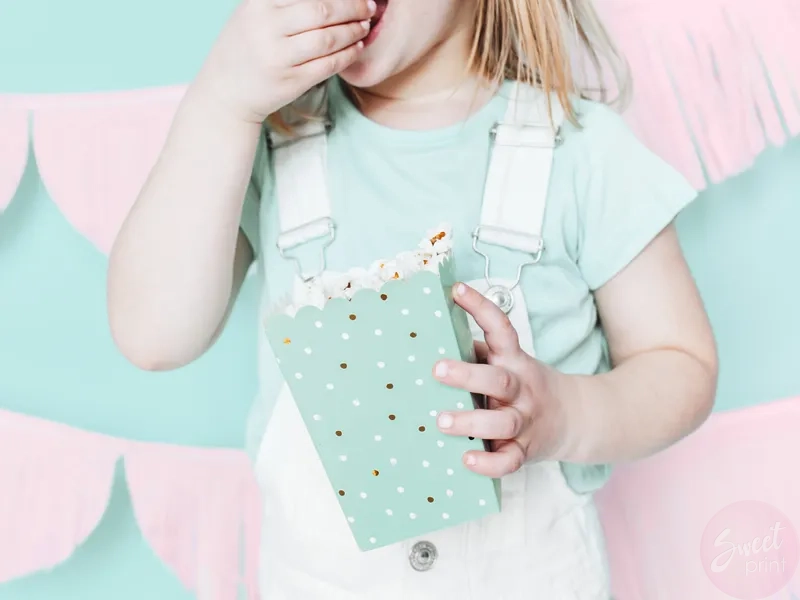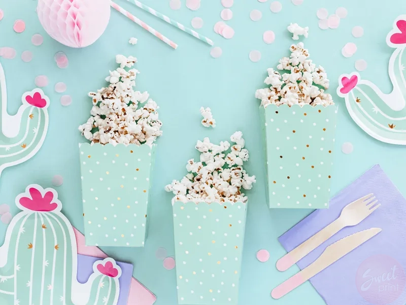 Pudełka na popcorn, miętowe w kropki