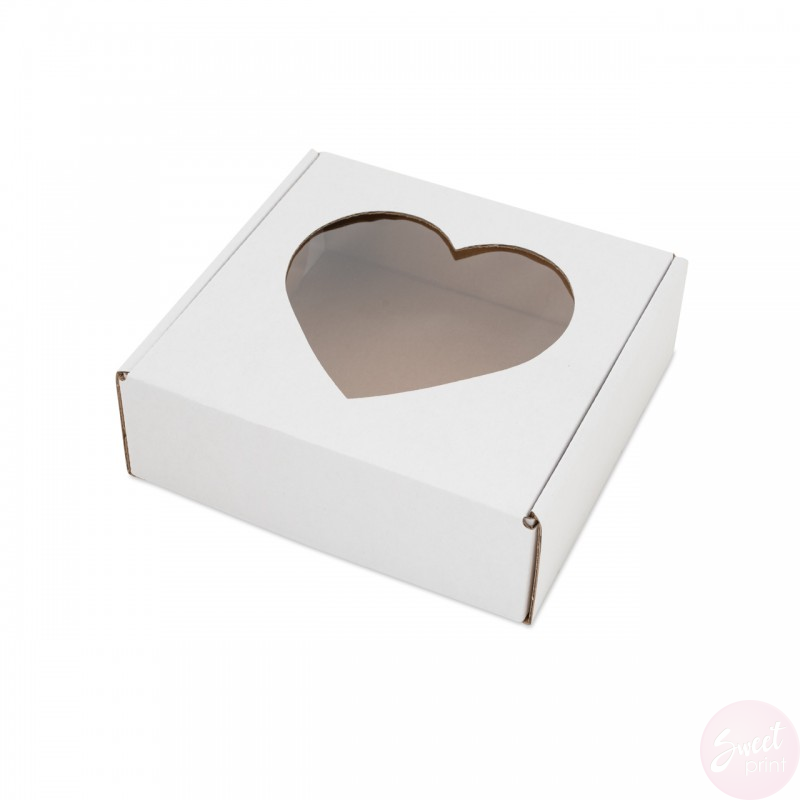 Pudełko z okienkiem w kształcie serca 20x20x10 cm BIAŁE