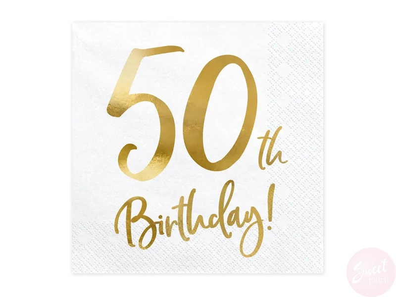 Papierowe serwetki ze złotym napisem 50th Birthday! będą ozdobą każdego imprezowego stołu czy bufetu.