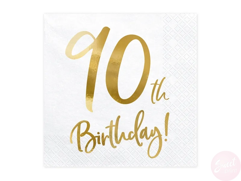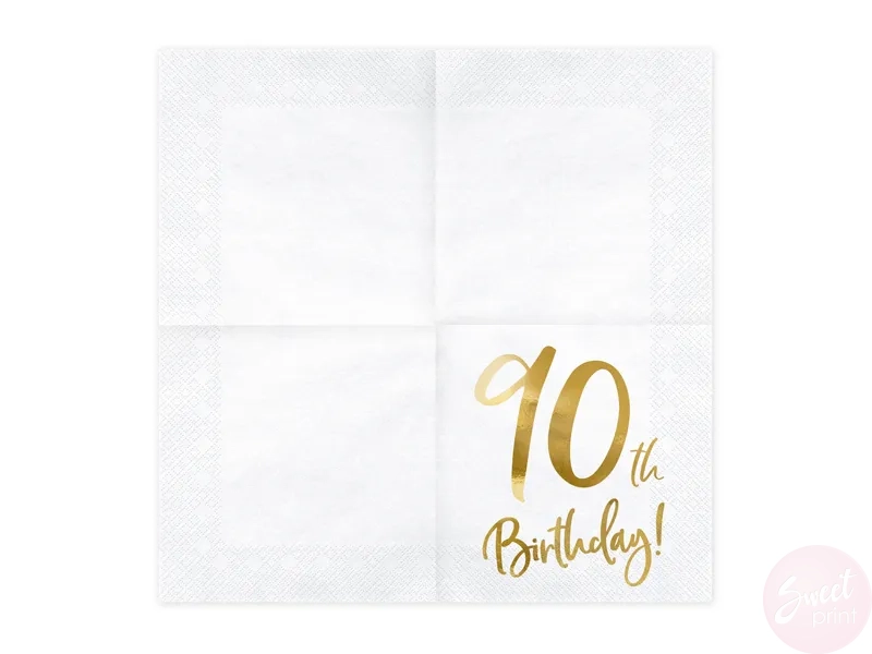 Papierowe serwetki ze złotym napisem 90th Birthday będą ozdobą każdego imprezowego stołu czy bufetu.