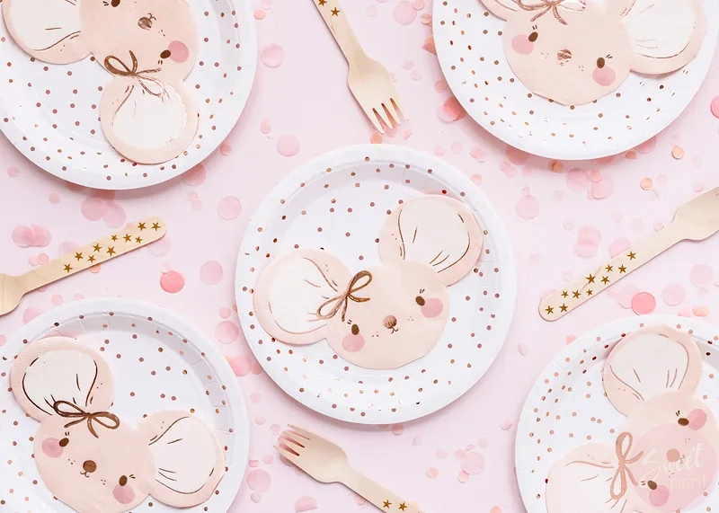 Jasnoróżowe, papierowe serwetki będą ozdobą urodzinowego stołu na przyjęciu małego miłośnika zwierząt lub podczas baby shower.