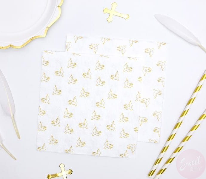 Papierowe serwetki komunijne z nadrukiem w gołąbki