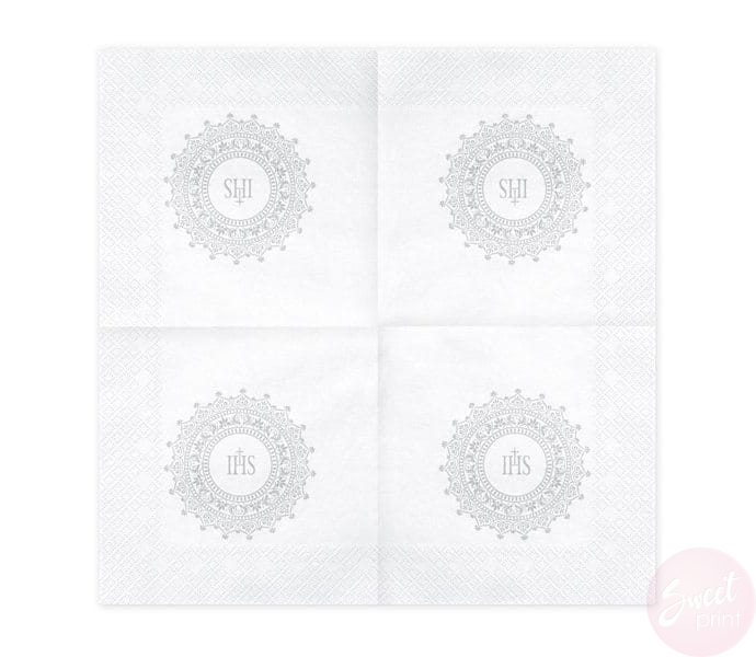 Serwetki komunijne ze srebrnym nadrukiem IHS