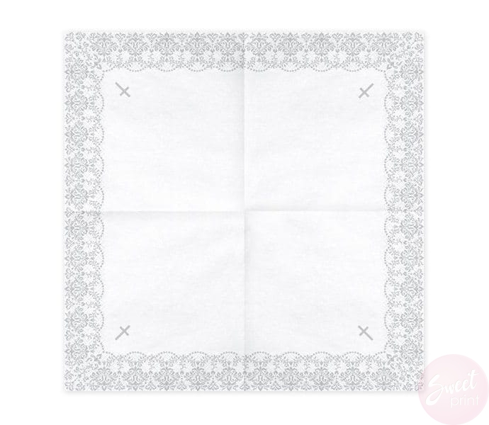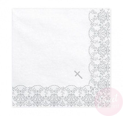 Papierowe serwetki ze srebrnym ornamentem będą ozdobą każdego komunijnego stołu czy bufetu.