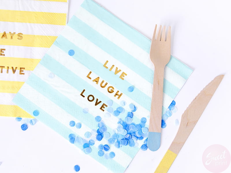 - na serwetkach nadrukowany jest napis: Live Laugh Love