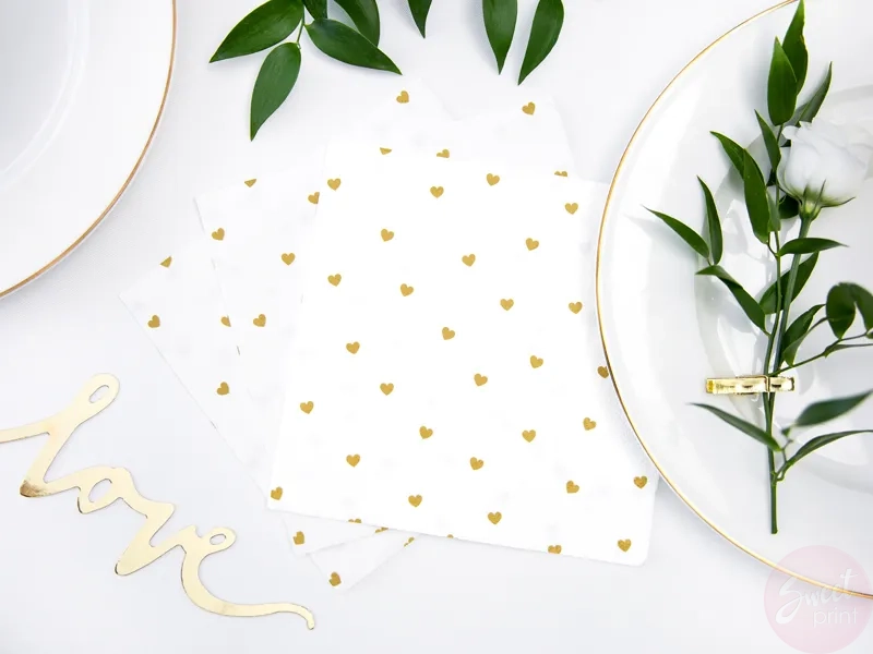 Papierowe serwetki w złote serduszka