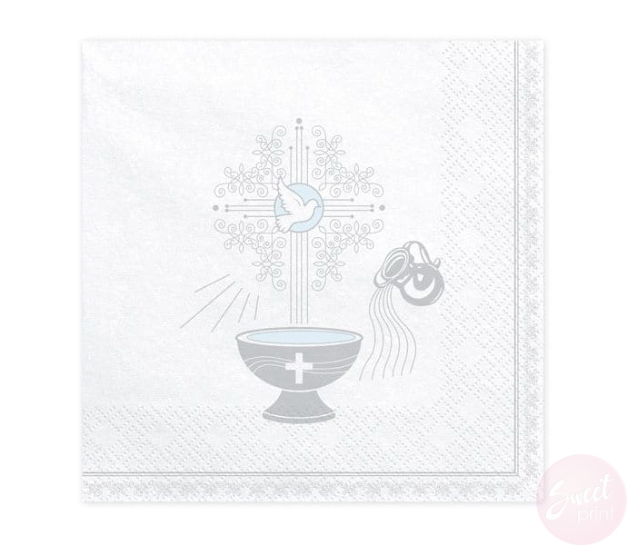 Serwetki ze srebrnym nadrukiem CHRZEST ŚWIĘTY