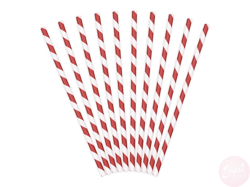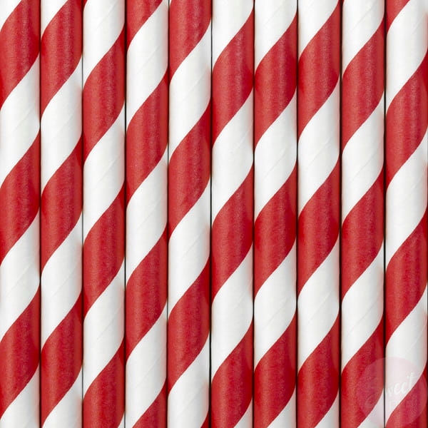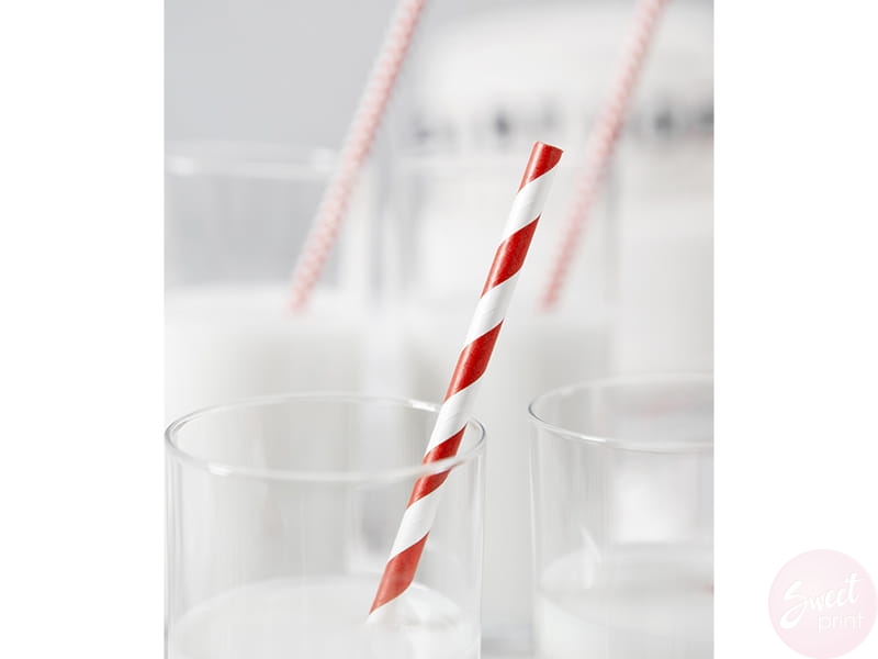 Papierowe słomki w czerwone paski