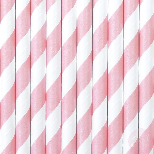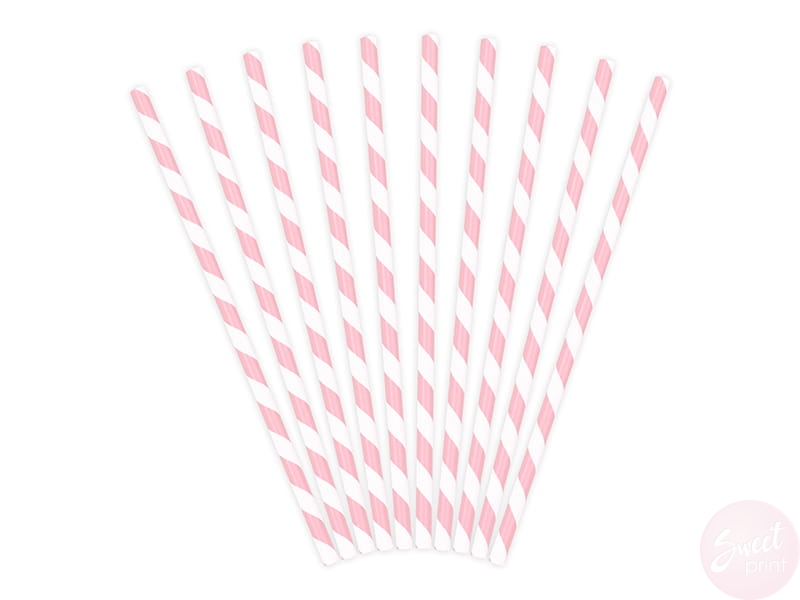 Papierowe słomki w jasnoróżowe paski