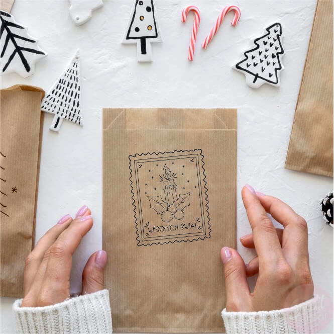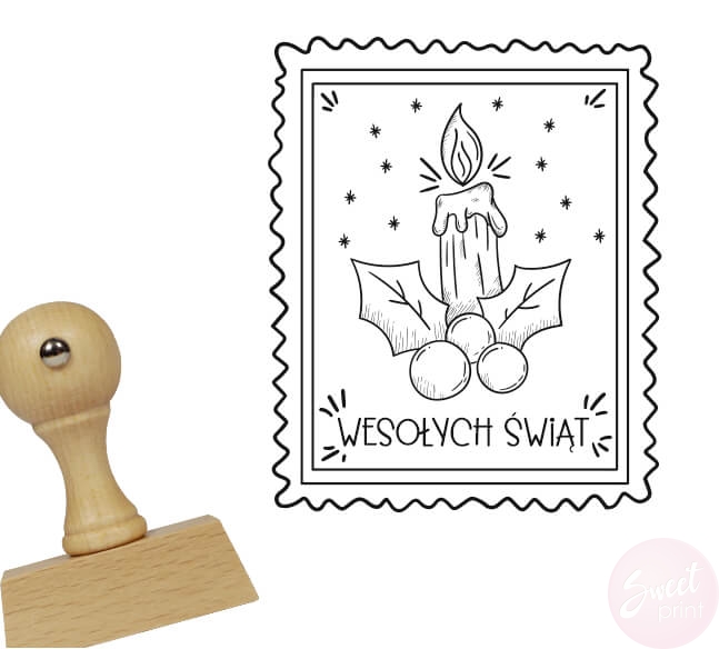 Pieczątka ze świątecznym znaczkiem będzie niezastąpiona w oznaczaniu etykiet, kopert, kartek świątecznych i dekoracji na Boże Narodzenie.