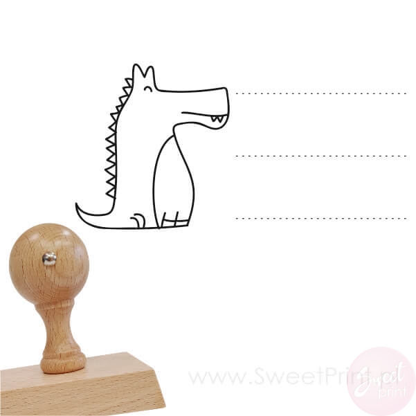 Taki stempel z krokodylem posłuży nie tylko do oznaczania przyborów szkolnych, możesz używać go dowolnie np. jako ex libris czy etykietę na opakowania lub przetwory.