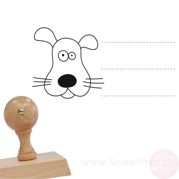 Taki stempel z psiakiem posłuży nie tylko do oznaczania przyborów szkolnych, możesz używać go dowolnie np. jako ex libris czy etykietę na opakowania lub przetwory.
