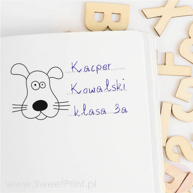 Stempel z pieskiem do oznaczania książek i zeszytów