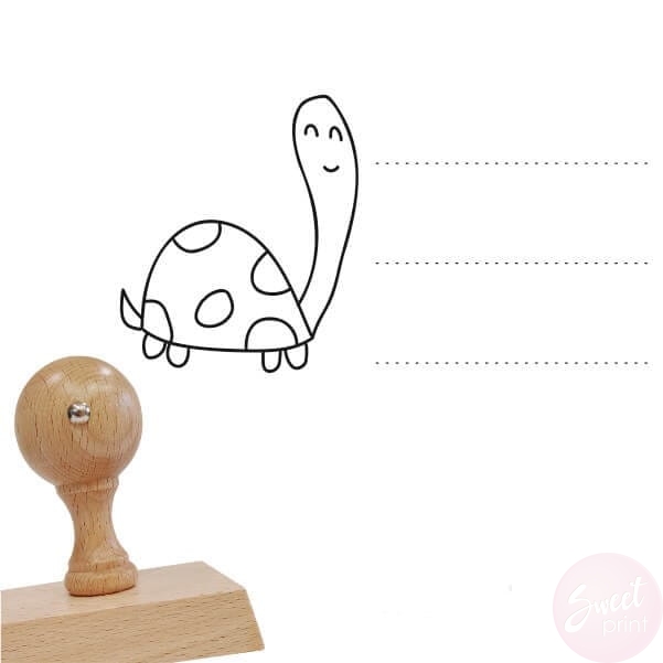 Taki stempel z żółwiem posłuży nie tylko do oznaczania przyborów szkolnych, możesz używać go dowolnie np. jako ex libris czy etykietę na opakowania lub przetwory.