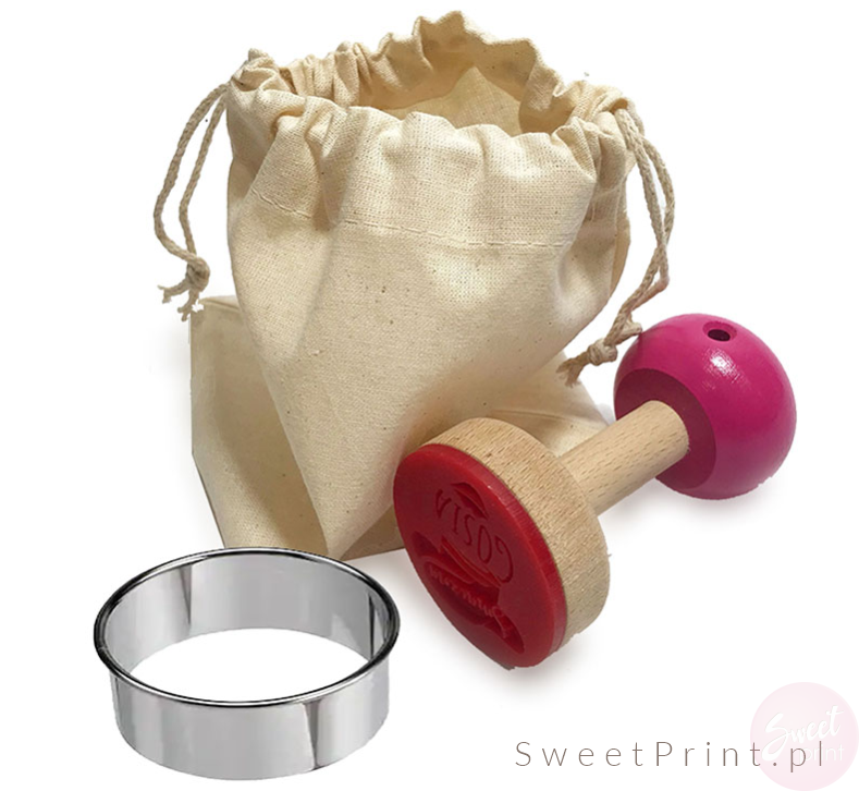 - zestaw zawiera: stempel, foremkę ze stali nierdzewnej nadająca kształt ciasteczku, bawełniany woreczek do przechowywania