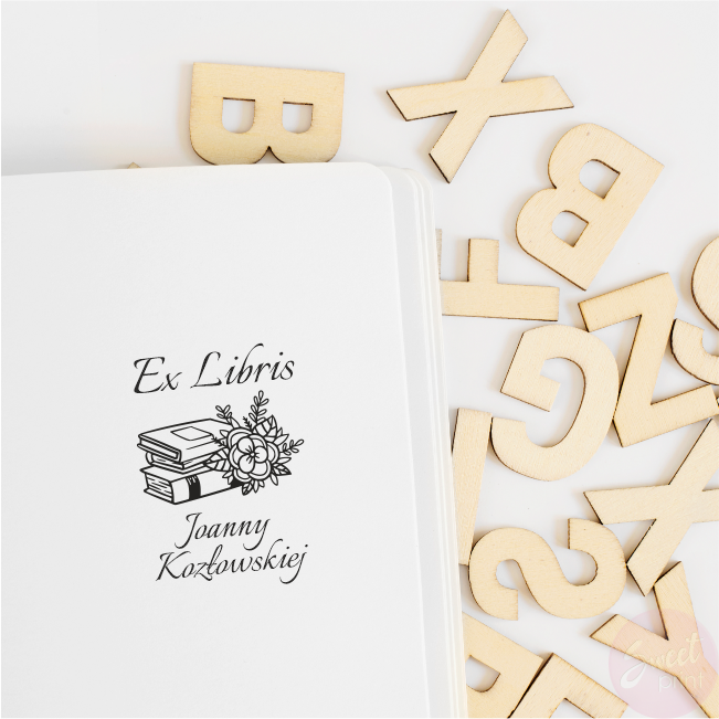 Personalizowany stempel exlibris KSIĄŻKI I BUKIECIK