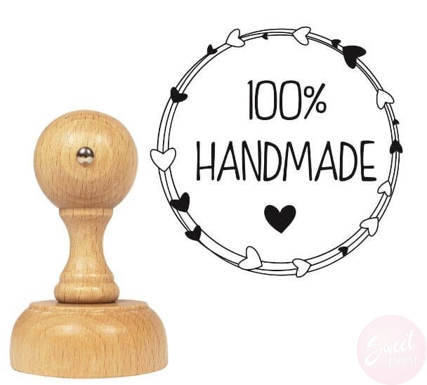 Stempel z wiankiem i napisem 100% handmade
