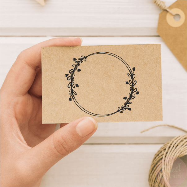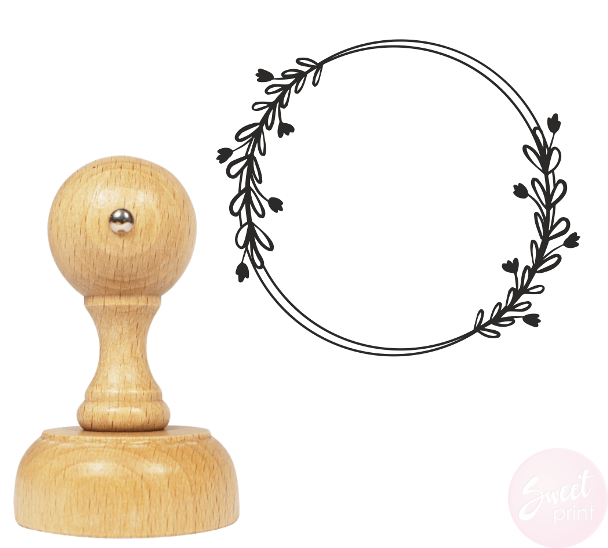 Ta ozdobna pieczątka przyda Ci się do oznaczania produktów, metek i opakowań. Wewnątrz wianka możesz ręcznie / lub używając mniejszego stempelka umieścić dowolne dane, np. cenę, rozmiar lub dedykację.