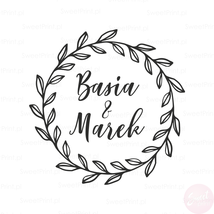Wewnątrz wianka można umieścić inicjały, imiona, datę ślubu lub inny, krótki tekst.