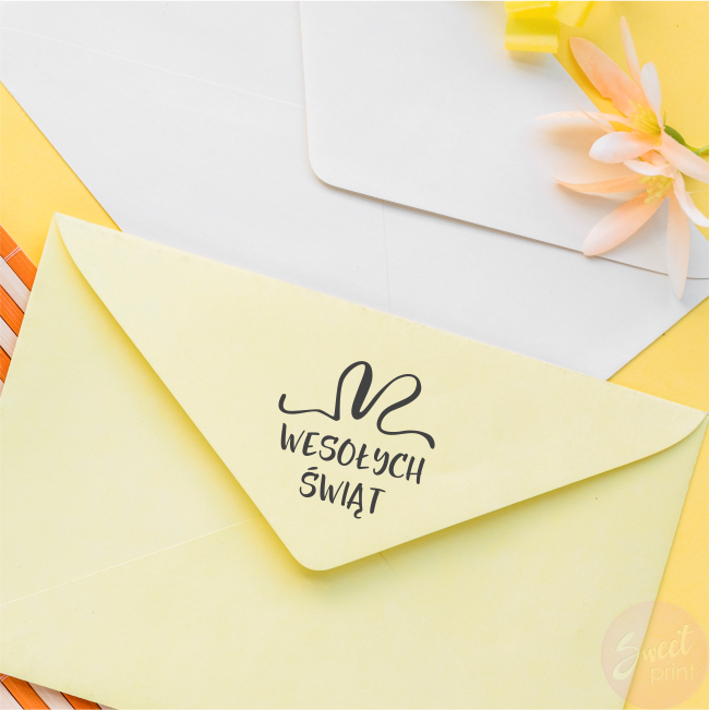 Pieczątka z napisem "Wesołych Świąt" będzie niezastąpiona w oznaczaniu etykiet, kopert, kartek świątecznych i dekoracji na Wielkanoc.