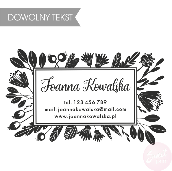 Na stemplu możesz umieścić dowolną treść - swoje imię i nazwisko, adres, dane kontaktowe,