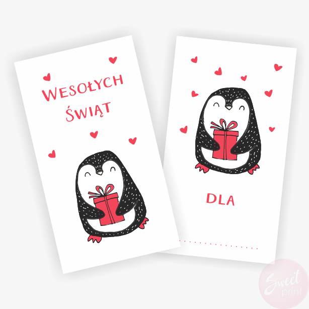 Świąteczne etykietki do wydruku - PINGWINEK Z PREZENTEM