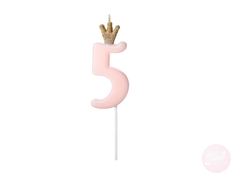 Świeczka na tort CYFRA 5 - RÓŻOWA