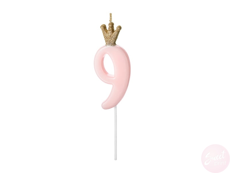 Świeczka na tort CYFRA 9 - RÓŻOWA