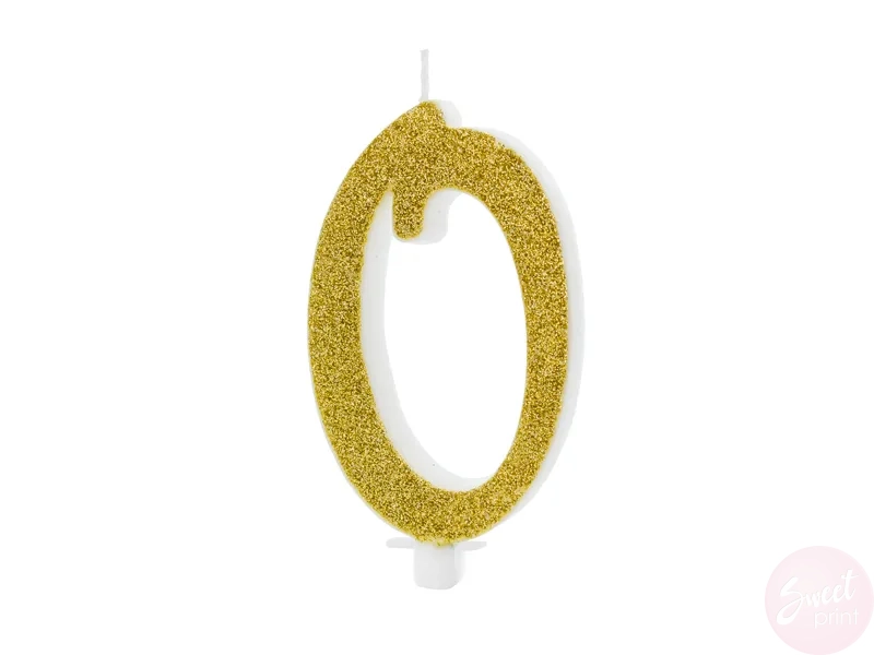 Świeczka urodzinowa CYFRA 0 - ZŁOTA BROKATOWA