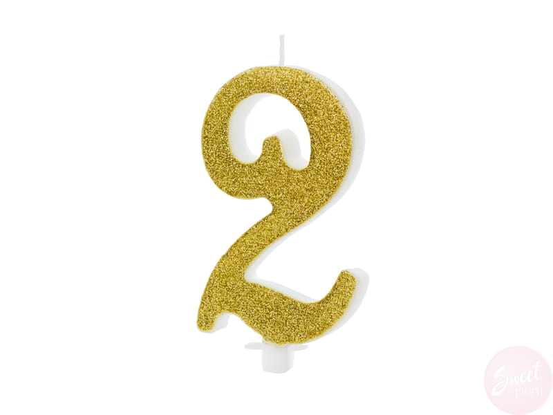 Świeczka urodzinowa w kształcie dwójki, złota brokatowa