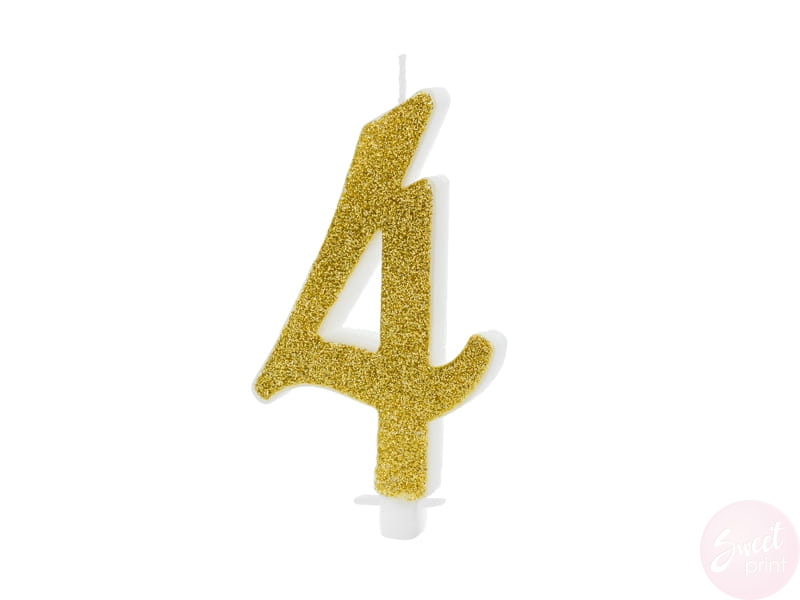 Świeczka urodzinowa w kształcie czwórki, złota brokatowa