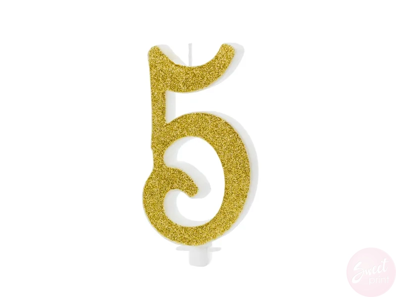 Świeczka urodzinowa w kształcie piątki, złota brokatowa