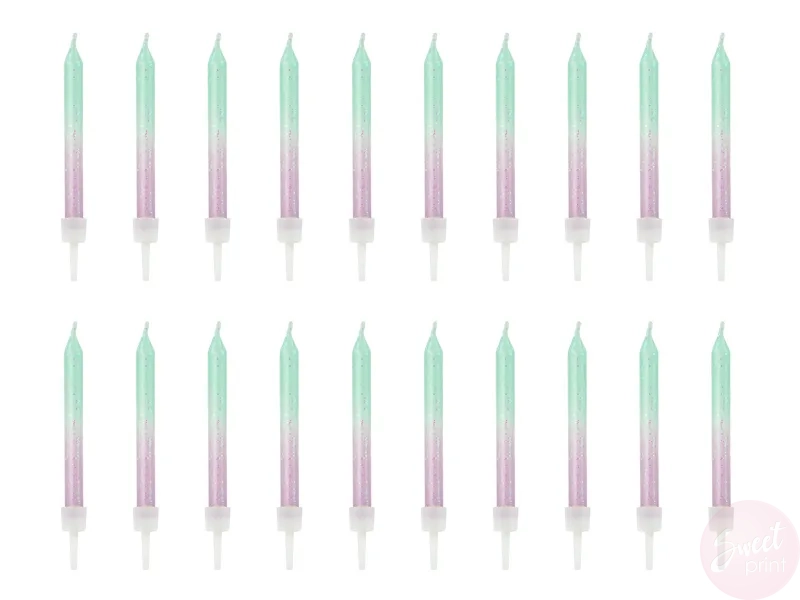 Świeczki urodzinowe ombre, zielono-fioletowe