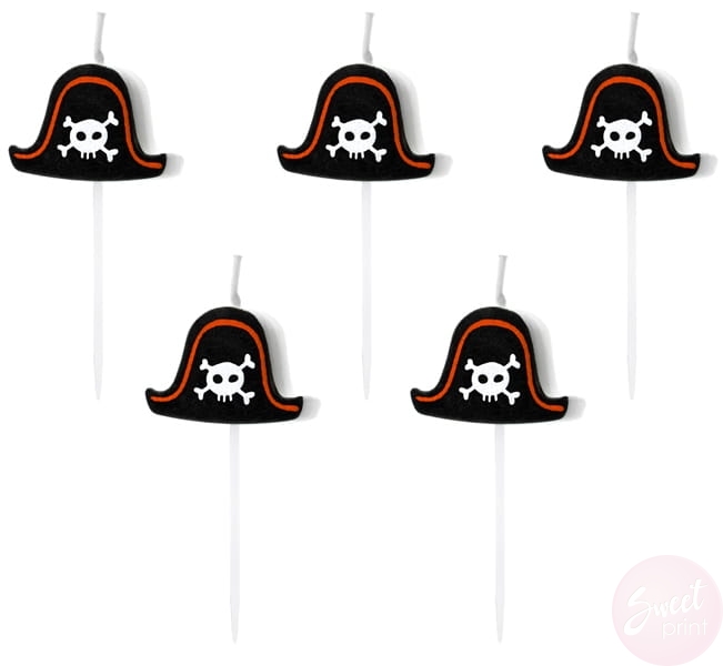 Na pirackich urodzinach nie może zabraknąć świeczek na torcie. Idealną dekoracją tortu dla małego pirata będą te oryginalne świeczki w kształcie pirackich kapeluszy! Takie świeczki ozdobią wszelkie urodzinowe wypieki: torty, babeczki i ciastka.