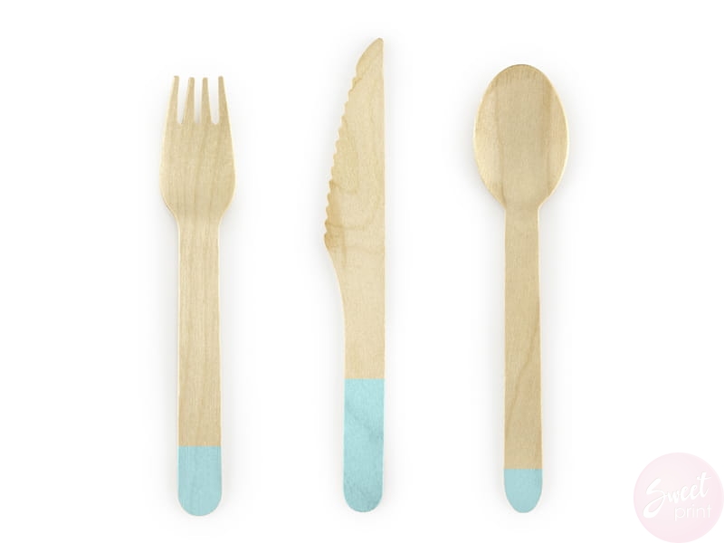 Drewniane sztućce z miętowym nadrukiem