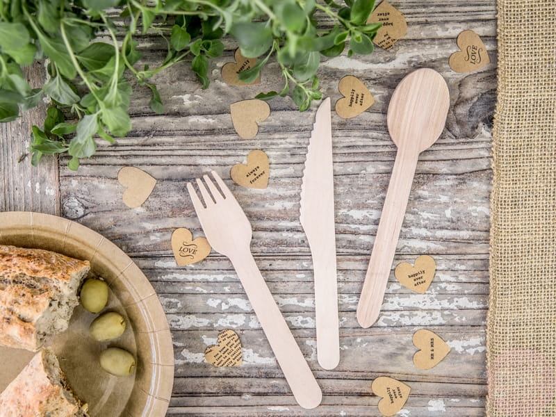 Drewniane sztućce to idealny zestaw na imprezy okolicznościowe, pikniki, garden party i przyjęcia dla dzieci.