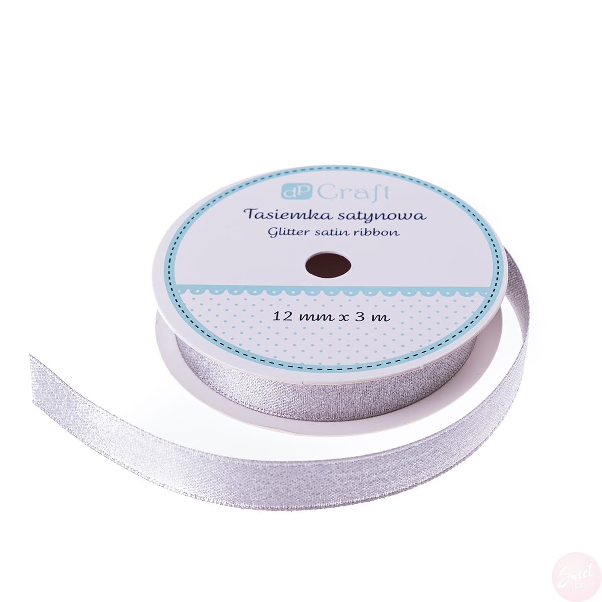 Tasiemka satynowa z brokatem 12 mm - SREBRNA