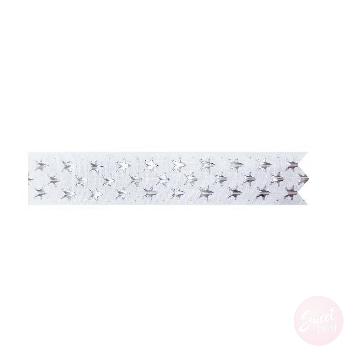 Zaakcentuj swoje opakowania, prezenty, kartki czy zaproszenia tą delikatną, białą tasiemką ze srebrnymi gwiazdkami.