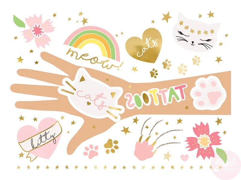 Zestaw zmywalnych tatuaży z kocimi motywami