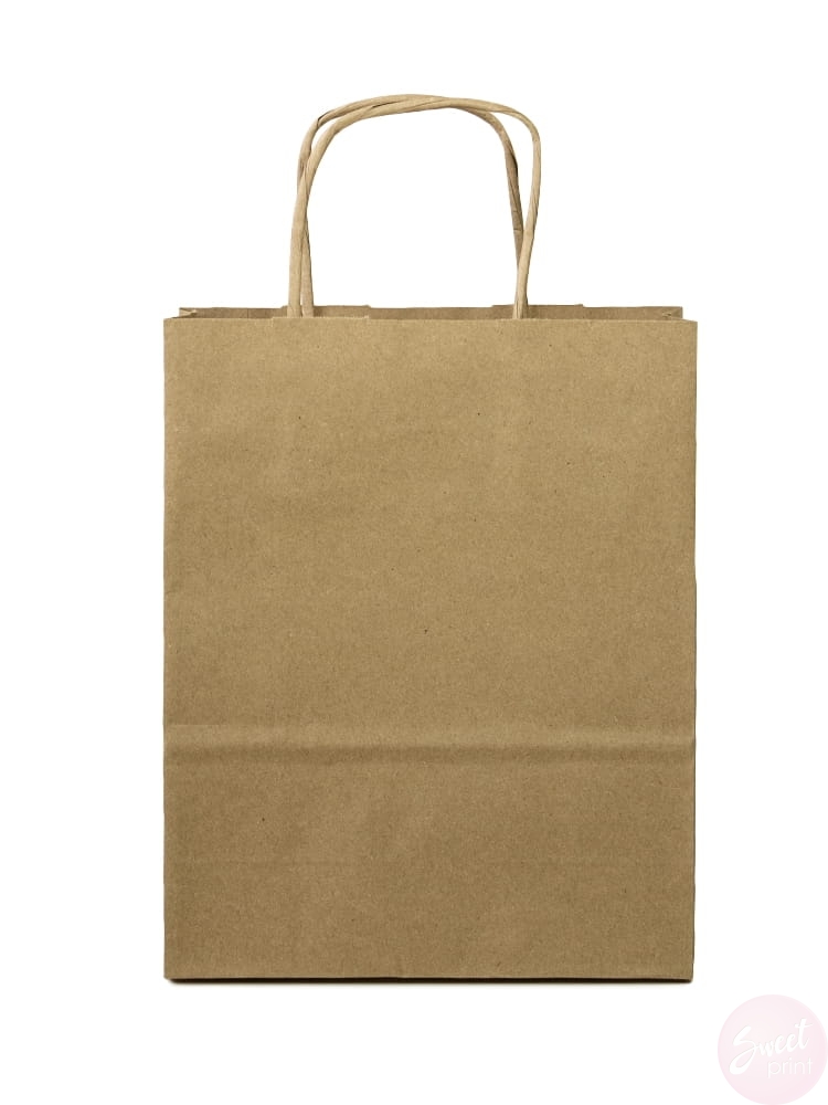 Brązowa torebka papierowa ze skręcanym uchwytem