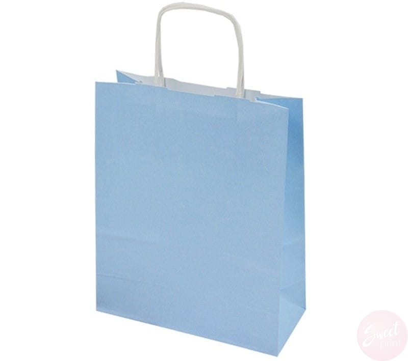 Niebieska torebka papierowa ze skręcanym uchwytem