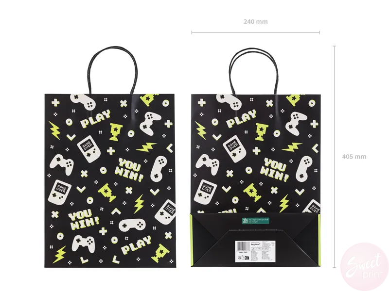 Torebka na prezenty z nadrukiem w gamepady