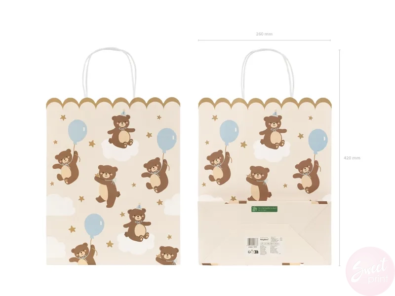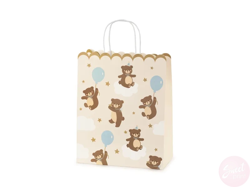 Wyczaruj opakowania i prezenty, które będą zachwycać! Taka papierowa torebeczka ze skręcanymi uchwytami będzie idealna do zapakowania słodkości i upominków urodzinowych.