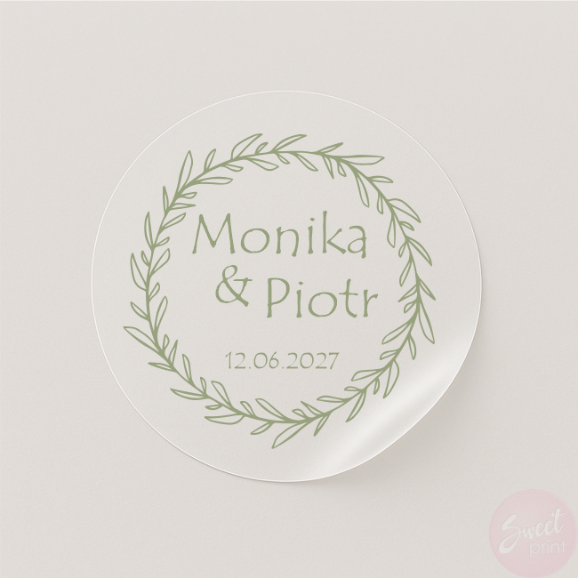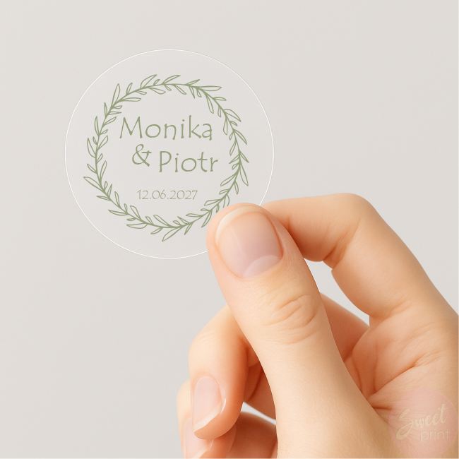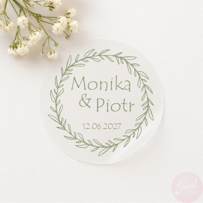 Transparentne naklejki ślubne z wiankiem - personalizowany akcent na Wasz wyjątkowy dzień!