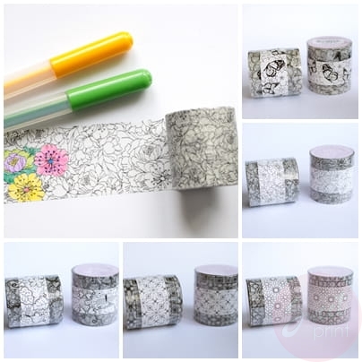 Taśma papierowa, samoprzylepna Washi Tape z nadrukiem do kolorowania
